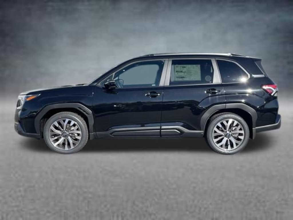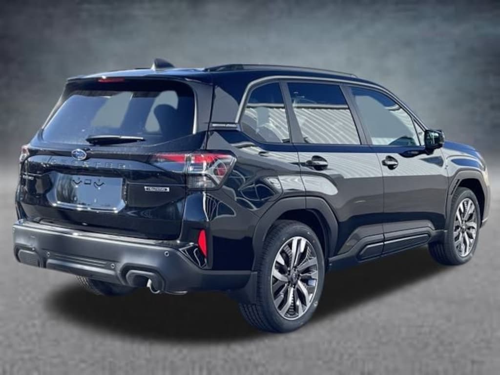 This Forester Touring also boasts a comprehensive suite of premium amenities, such as dual-zone automatic climate control, a Heads-Up Display, and a power-adjustable driver's seat with memory function. The exterior is equally impressive, with sleek 19-inch dark gray aluminum-alloy wheels, body-color bumpers, and a sporty rear spoiler.
