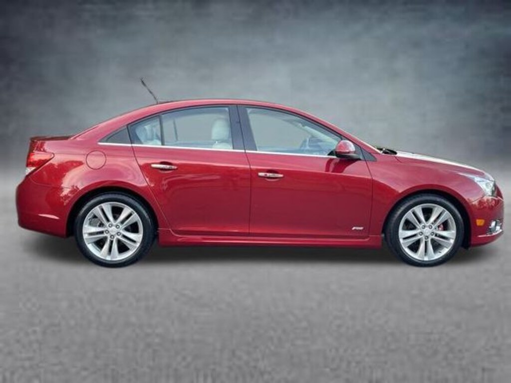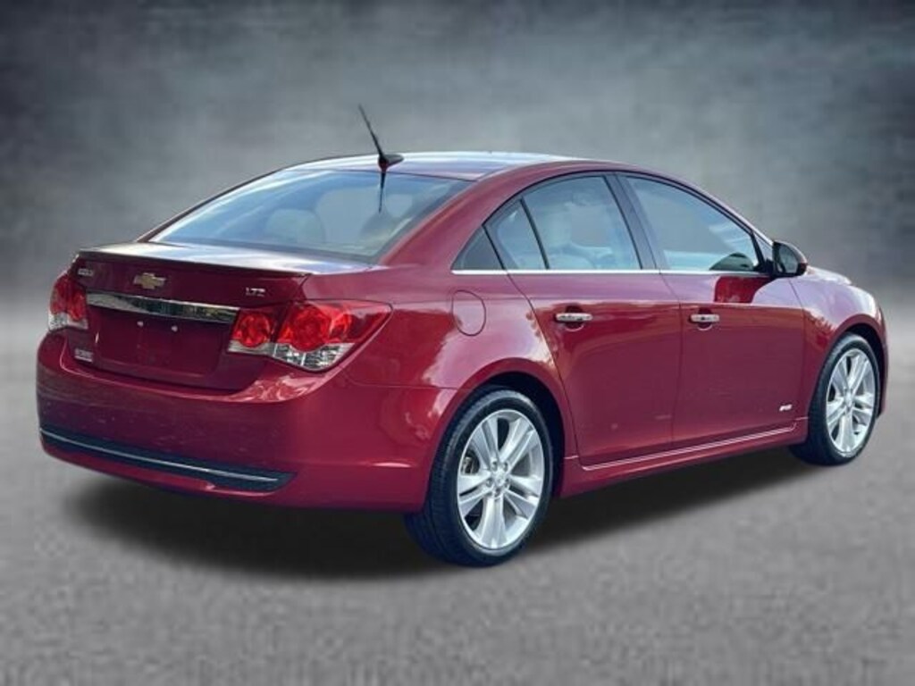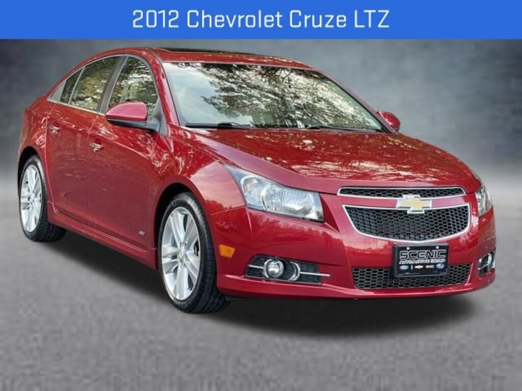 The 2012 Chevrolet Cruze LTZ in Crystal Red Tintcoat offers a refined and sporty presence with its turbocharged ECOTEC 1.4L I4 engine and 6-speed automatic transmission with overdrive, delivering a smooth and efficient driving experience. Its FWD configuration balances performance with everyday practicality, making it agile in city traffic and comfortable on longer drives.