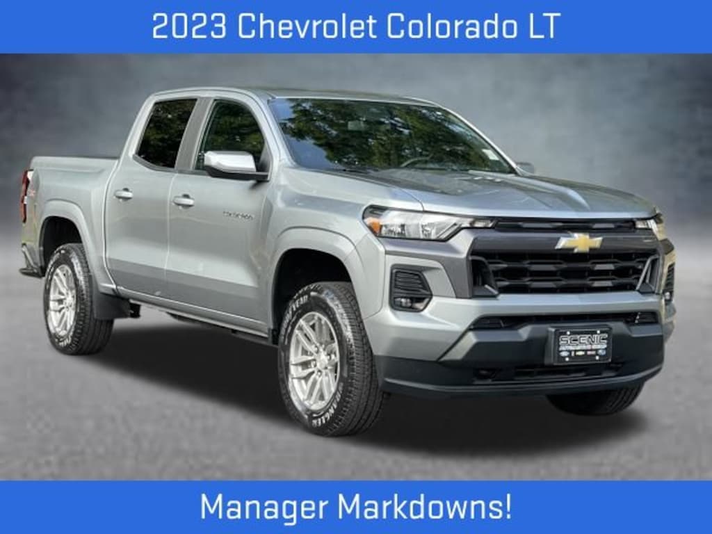 The 2023 Chevrolet Colorado LT in Sterling Gray Metallic combines rugged capability with refined features for a versatile midsize pickup experience. Powered by a 2.7L turbocharged engine paired with an 8-speed automatic transmission and four-wheel drive, it delivers confident performance both on the road and off, while the heavy-duty trailering package and integrated trailer brake controller enhance its towing capabilities.