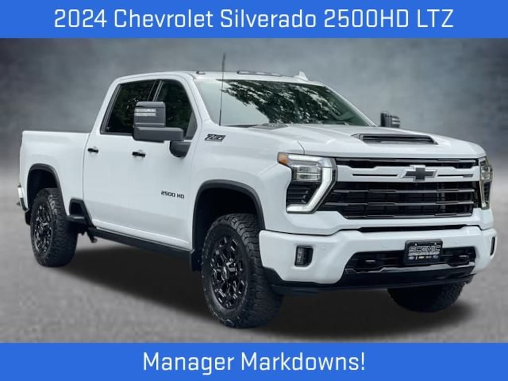 The 2024 Chevrolet Silverado 2500HD LTZ in Summit White is a commanding heavy-duty truck designed to deliver both strength and refinement. Powered by a 6.6L V8 engine paired with a 10-speed automatic transmission and 4WD, it brings dependable towing and hauling capability while remaining composed on the road. Outfitted with the Z71 Off-Road Package and Z71 Sport Edition, its equipped to handle rugged terrain with confidence, enhanced by an off-road suspension, hill descent control, and high-gloss black exterior accents that elevate its bold stance.