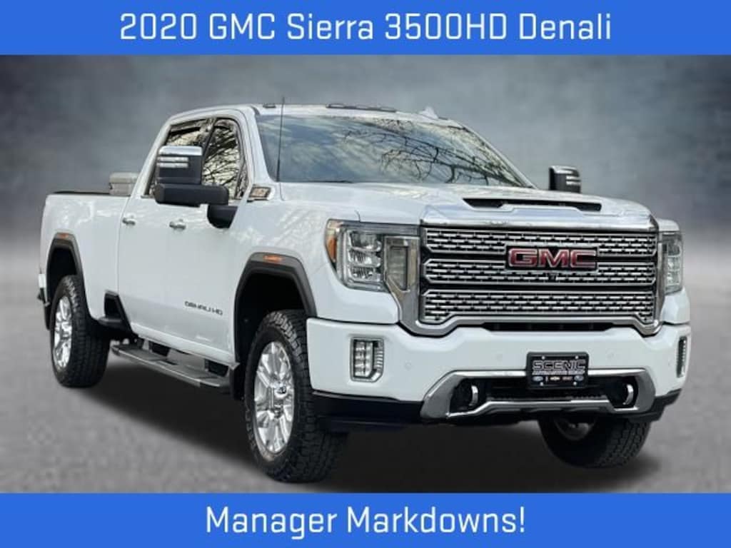 Discover the ultimate in power, capability, and luxury with the 2020 GMC Sierra 3500HD Denali. This exceptional truck is a true workhorse, boasting a Duramax 6.6L V8 Turbodiesel engine that delivers an impressive 445 horsepower and 910 lb-ft of torque. Paired with a 10-speed automatic transmission and 4-wheel drive, this Sierra 3500HD is ready to tackle any task with ease.