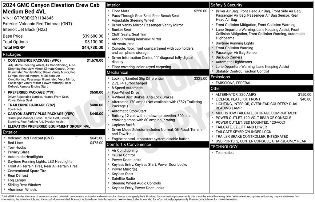 2024 GMC Canyon Elevation 4WD Volcanic Red Tintcoat 2.7L I4 Turbocharged DOHC 16V LEV3-SULEV30 310hp 4WD.
