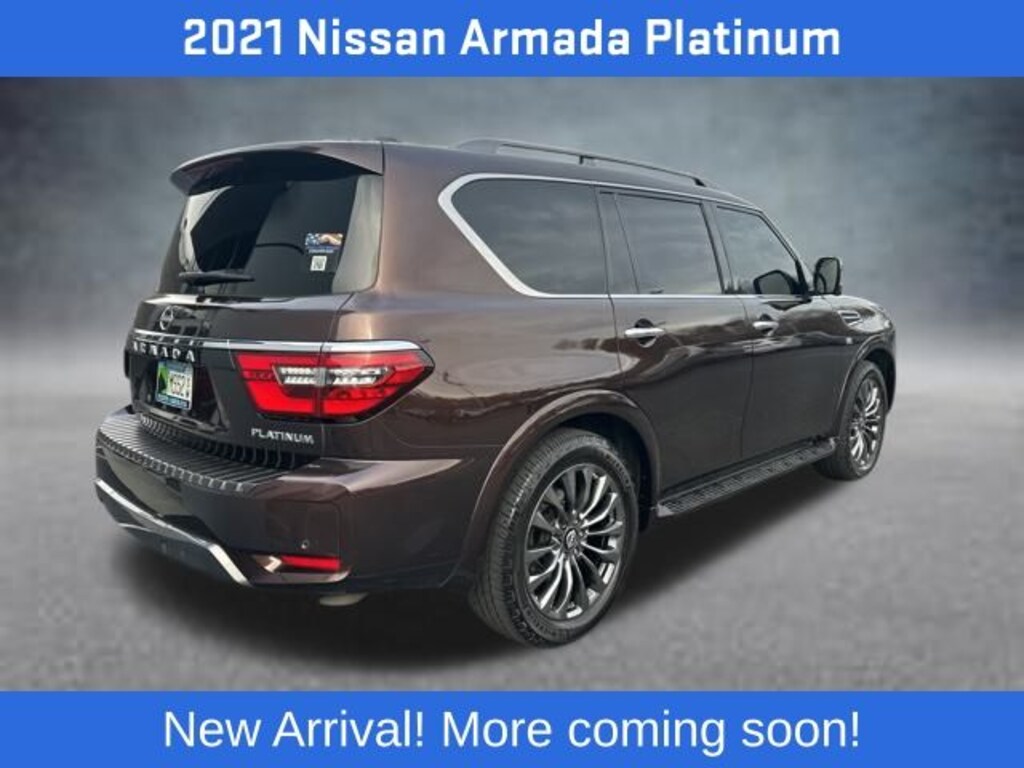 Whether you're transporting the family, embarking on a weekend adventure, or simply seeking a refined and capable SUV, the 2021 Nissan Armada Platinum is the perfect choice. With its exceptional performance, cutting-edge technology, and uncompromising luxury, this vehicle is sure to exceed your expectations.