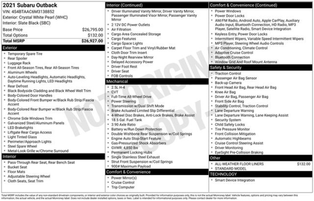 • Radio: Subaru STARLINK Dual 7.0" Multimedia System